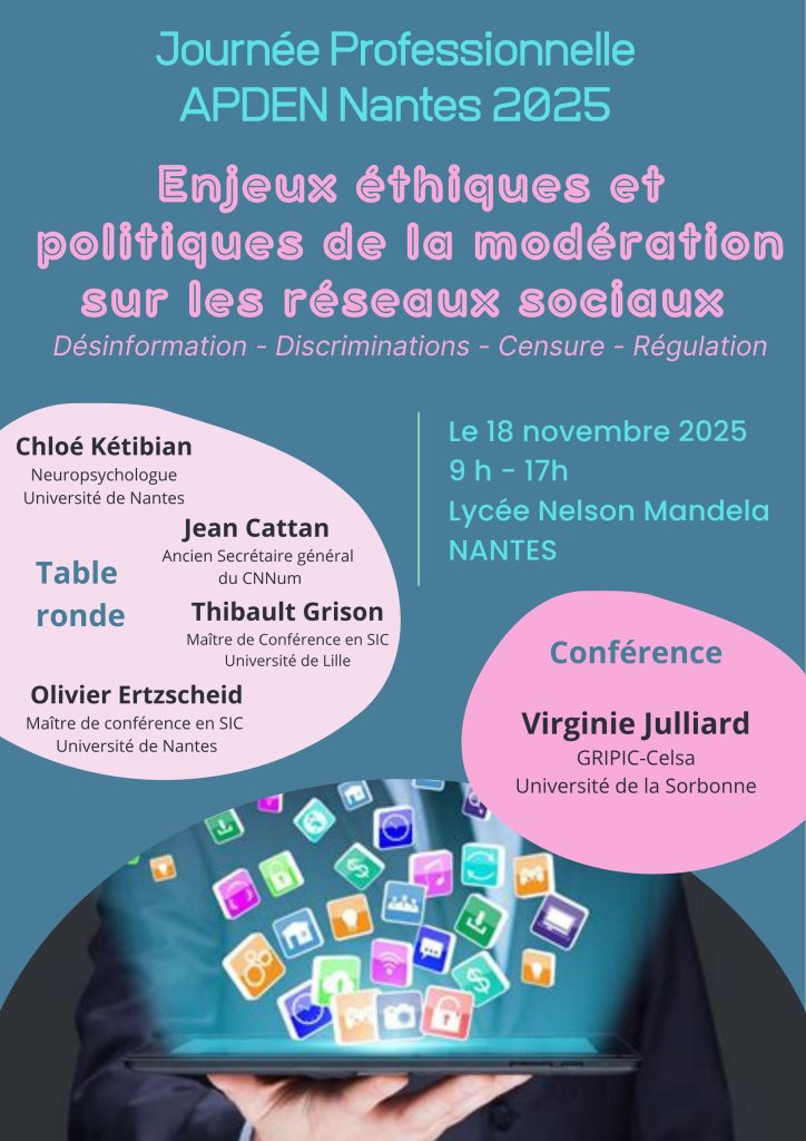 J’ai le plaisir et l’honneur d’être invité mardi prochain (18 Novembre) aux journées professionnelles de l’APDEN (Association des Professeurs Documentalistes de l’Education Nationale) pour y parler (en bonne compagnie) des enjeux liés à la modération, mais plus globalement à la circulation des idées, des faits ety des opinions, sur les réseaux et médias sociaux.