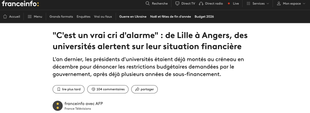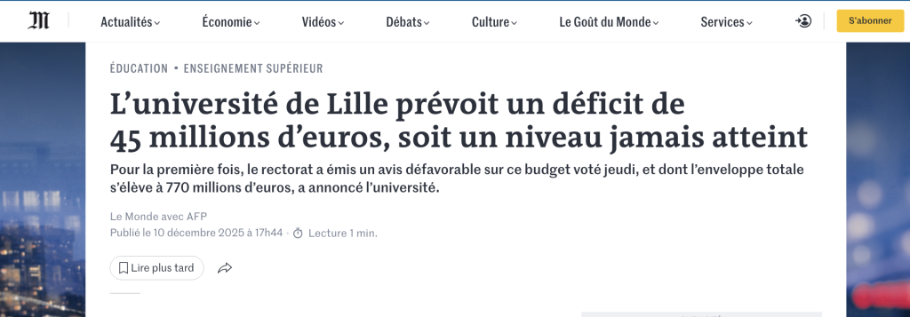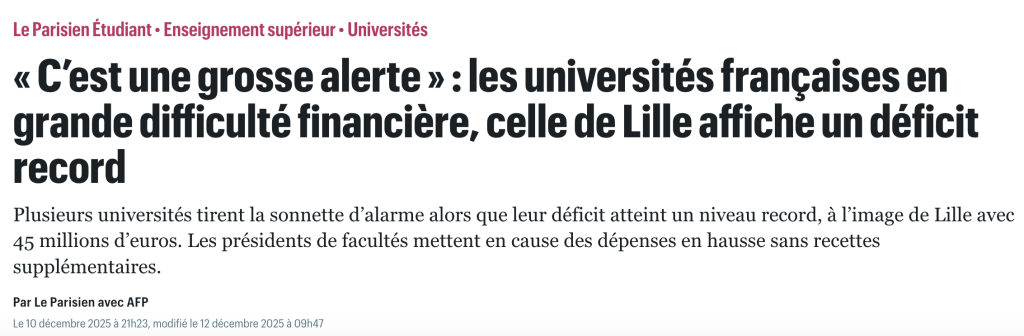 On gueule, on analyse, on explique. L’année dernière à la même époque déjà je vous expliquais (avec d’autres) pourquoi nos universités étaient en grand danger. Et le scénario que j’y décrivais et que tout le monde connaît, se met inexorablement en place. En Mars 2025 et à l’occasion de la journée Stand Up For Science je rappelais (avec d’autres) que « plus de 60 universités sur les 74 que compte l’hexagone sont en situation de faillite ou de quasi-faillite (elles étaient 15 en 2022, 30 en 2023, et donc 60 en 2024 à voter un budget initial en déficit). »